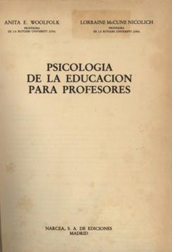 LA PSICOLOGIA DE LA EDUCACION Y EL PROFESOR. Un instrumento para el profesor de hoy; La enseñanza: un arte, una ciencia y mucho trabajo; Cuestiones que afectan a los profesores de hoy; Hallazgo de soluciones para los problemas con que se enfrentan los profesores: el rol de la psicología de la educación. CRECIMIENTO Y DESARROLLO HUMANOS. Desarrollo cognitivo; Una teoría global sobre el pensamiento; La obra de Piaget; Otras teorías acerca del desarrollo del pensamiento; Aspectos físicos y lingüísticos del desarrollo cognitivo. DESARROLLO PERSONAL Y SOCIAL. Una teoría del desarrollo personal y social: la obra de Erickson; Otros aspectos del desarrollo personal y social; Aspectos físicos y sexuales del desarrollo personal y social. TEORIA Y PRÁCTICA DEL APRENDIZAJE. Concepciones conductistas del aprendizaje; Condicionamiento clásico: emparejamiento automático de respuestas con nuevos estímulos; Tecnología conductista. METODOS CONDUCTISTAS PARA LA ORGANIZACION DE LA CLASE. Métodos centrados en la conducta positiva; Métodos de desarrollo de nuevas conductas; Métodos para hacer frente a una conducta indeseable. CONCEPCIONES COGNITIVAS DE APRENDIZAJE. El aprendizaje desde el punto de vista cognitivo; La comprensión como elemento básico: la obra de los primeros teóricos de la forma; El aprendizaje por descubrimiento: la obra de Bruner; Aprendizaje de recepción: la obra de Ausubel. APRENDIZAJE DE CONCEPTOS, RESOLUCION DE PROBLEMAS, CREATIVIDAD Y TRANSFERENCIA. Diferentes resultados del aprendizaje y diferentes aptitudes para aprender; Enseñanza y aprendizaje de conceptos; Resolución de problemas. REALIZACION DE LA INSTRUCCION, OBJETIVOS, MOTIVACION Y ORGANIZACION. Fijación de objetivos; Empleo de los objetivos de instrucción; Empleo del análisis de áreas en la determinación de los objetivos de instrucción; Empleo de las taxonomías en la determinación de los objetivos de instrucción. MOTIVACION DE LOS ALUMNOS. Que es la motivación; Teorías de la motivación y sus implicaciones para los profesores; Factores que influyen en la motivación. EMPLEO DE ESTRATEGIAS DOCENTES EFICACES. Búsqueda de claves del éxito; La organización de una enseñanza eficaz; Algunas dimensiones básicas de la enseñanza. ORGANIZACION DE LA CLASE: DIMENSIONES INTERPRESONALES Y FISICAS. Liderazgo en el aula; Creación de un entorno positivo en el aula. Cuando surgen los problemas: la necesidad de comunicación. LA APTITUD Y LA INTELIGENCIA. Medición del rendimiento, la aptitud y la inteligencia; Medición y evaluación. Entendimiento del test: preliminares; Puntuaciones de test: que significan; Empleos de los test estandarizados en las escuelas. EVALUACION EN EL AULA: TESTS Y CALIFICACIONES REALIZADOS POR EL PROFESOR. Evaluación en el aula y Tests elaborados por el profesor; Efectos de las calificaciones en los alumnos; Factores que influyen en las calificaciones que asignan los profesores. ALUMNOS CON PROBLEMAS Y NECESIDADES ESPECIALES. Enseñanza para alumnos de procedencias diferentes; Alumnos de hoy: diversidad de procedencias; Estrategias de enseñanza para una clase multicultural. El caso especial del idioma. ENSEÑANZA PARA ALUMNOS ESPECIALES. Nota general sobre las etiquetas y los enfoques; Alumnos con problemas de aprendizaje; Alumnos con capacidades especiales: los bien dotados.