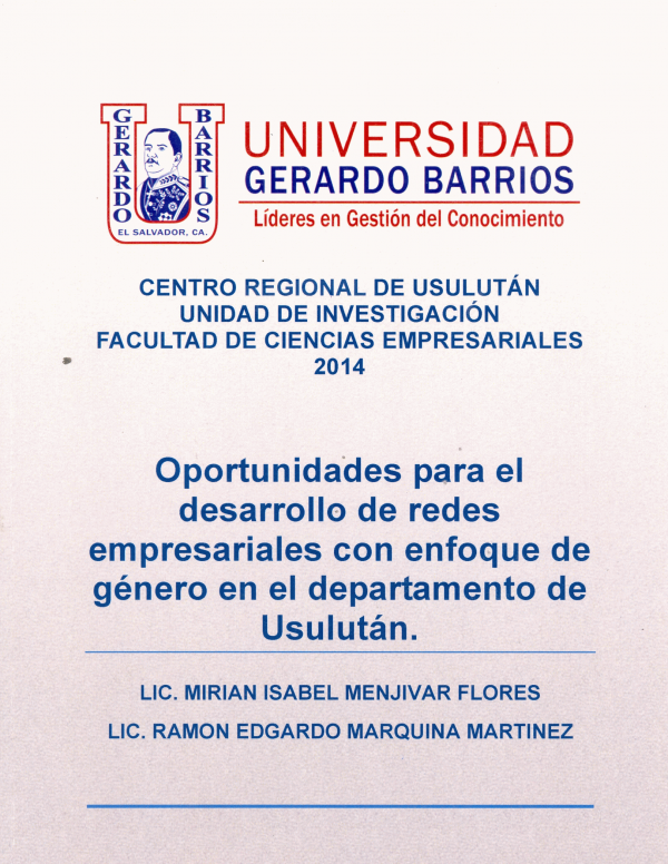 Oportunidades para el desarrollo de redes empresariales con enfoque de género en el departamento de Usulután/ Menjivar flores, Miriam Isabel; Marquina Martínez, Ramón Edgardo