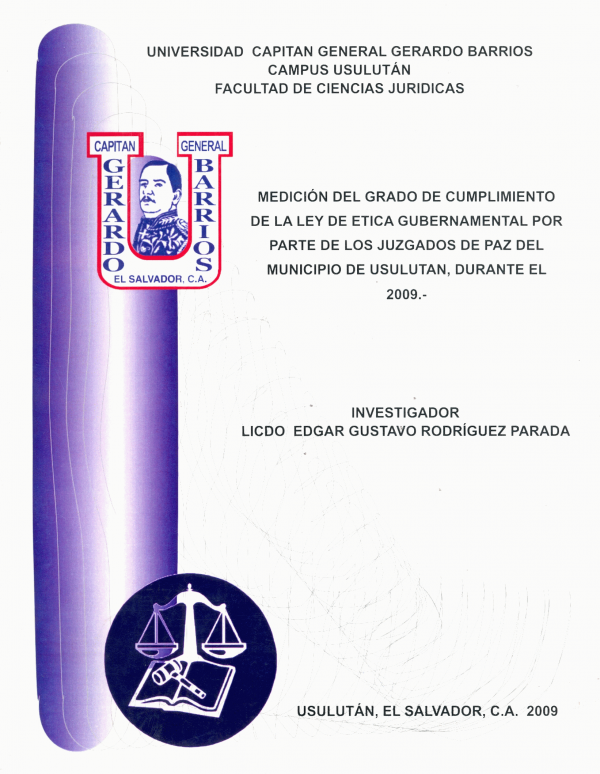 Medición del grado de cumplimiento de la Ley de Etica Gubernamental por parte de los Juzgados de Paz del municipio de Usulután, durante el 2009 / Rodríguez Parada, Edgar Gustavo